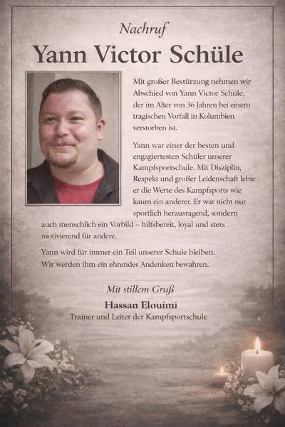 In tiefer Trauer nimmt auch die Tammazla Kampfkunstschule Müllheim Abschied von Yann Victor Schüle.